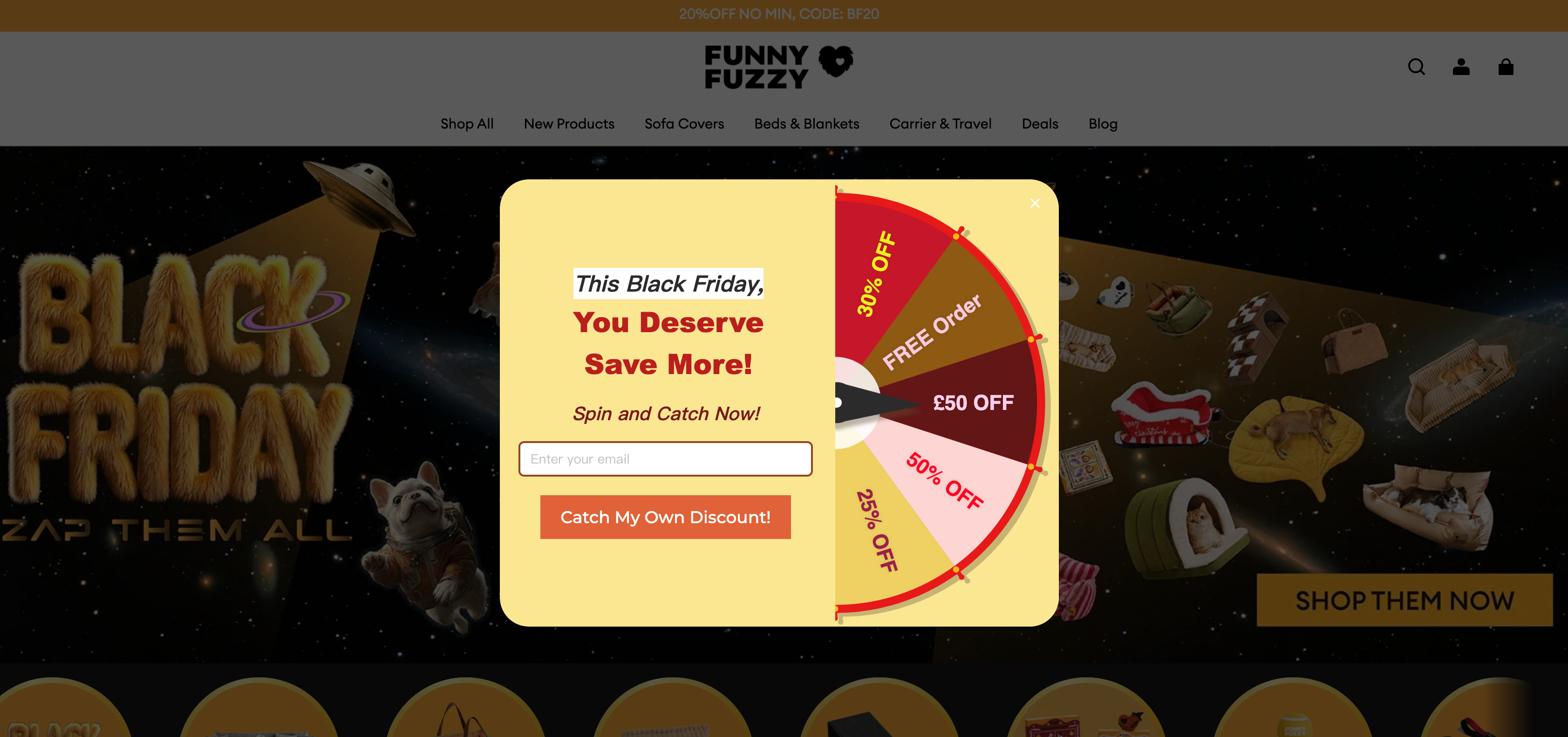 smartpush的老朋友funnyfuzzy,已经将自己的网站换上了全新的黑五主题,配合smartpush的弹窗,订阅率可以做到12%以上,你可以挑战下是否可以超越?