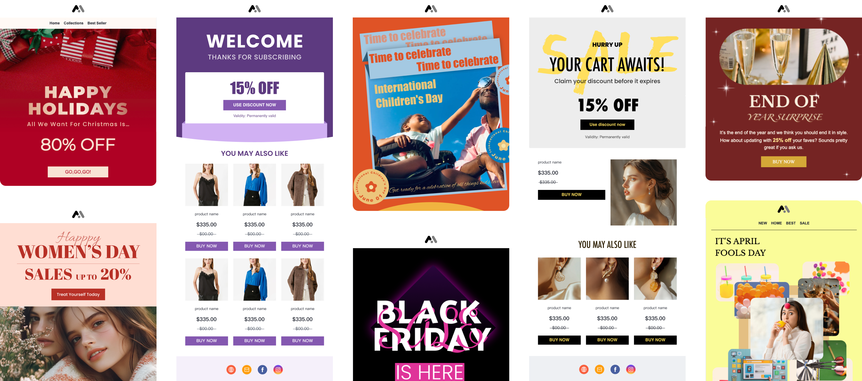 Find the pre-made template that will give your campaign the best chance of success. Black Friday, Christmas, Valentine’s Day, and so many other launch-ready email templates that are so easy to customize.